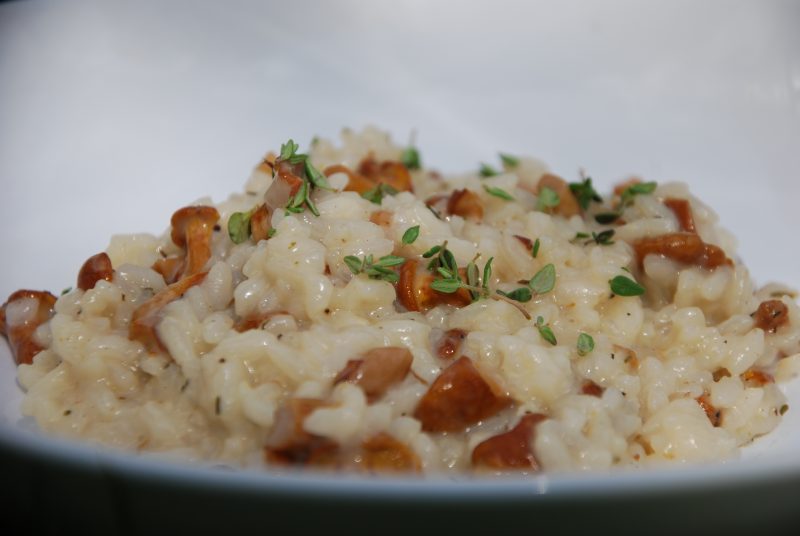 Risotto nie należy do ulubionych potraw mojej rodziny, więc robię je rzadko. Wczoraj jednak nadszedł ten dzień, bo dostałam świeże kurki i stwierdziłam, że podam je właśnie z risotto. Zjedli i nawet nieco sobie dołożyli, więc nie było chyba źle. I jeszcze taka sprawa: wcześniej risotto robiłam zawsze na białym winie, ale gdy na Jadłonomii zobaczyłam, że można je zrobić na bazie cydru, przerzuciłam się na ten ostatni trunek. Wolę delikatny posmak jabłek niż kwaskawy winogron.