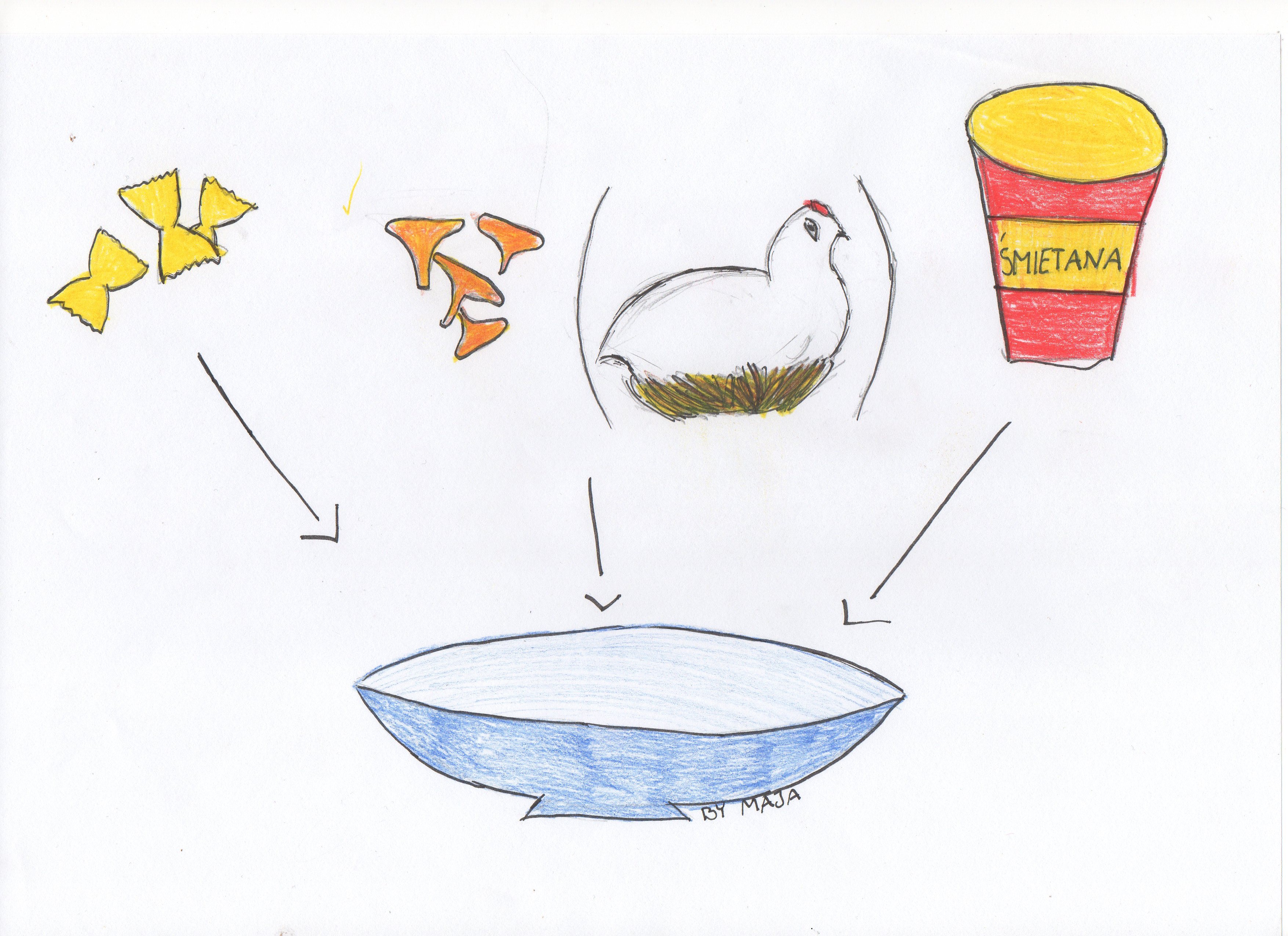 Moje dzieciństwo to Puszcza Nadnotecka, gdzie moi Rodzice mieli domek na skraju lasu. Spędzaliśmy tam wiele weekendów i sporą część wakacji. Uwielbiałam to miejsce, było tam tak spokojnie. Prawdziwa wieś. Poza jesienią, gdy zaczynał się sezon grzybowy. Mieszkaliśmy w samym sercu grzybowego zagłębia, do którego zjeżdżali grzybiarze z całej Polski. Najwięcej ze Śląska, z którego jeździły dodatkowe, specjalne pociągi. Pamiętam setki koszy, wiader i kartonów, które upychano w wagonach. Grzybobranie było dla mojej Rodziny punktem obowiązkowym. Jak tylko pojawiały się grzyby (a nawet, gdy ich nie było), rano wyruszaliśmy na zbiór, uzbrojeni w kosze i nożyki. I tak codziennie. Zbieranie było super, gorzej z czyszczeniem obfitych zbiorów. Na szczęście przetwórstwem zajmowała się już tylko Mama. Wśród znajomych, słynne były Jej grzybki w occie. Do dzisiaj uwielbiam zbierać grzyby, ale chętnie je wydaję, bo nie lubię ich obrabiać. Wyjątkiem są kurki, które są mało wymagające. Gdy dzisiaj zobaczyłam je na targowisku, kupiłam natychmiast. Mama najczęściej smażyła je po prostu z cebulą, czasami robiła z nich jajecznicę. Ja zrobiłam z nich pyszny sos do makaronu.