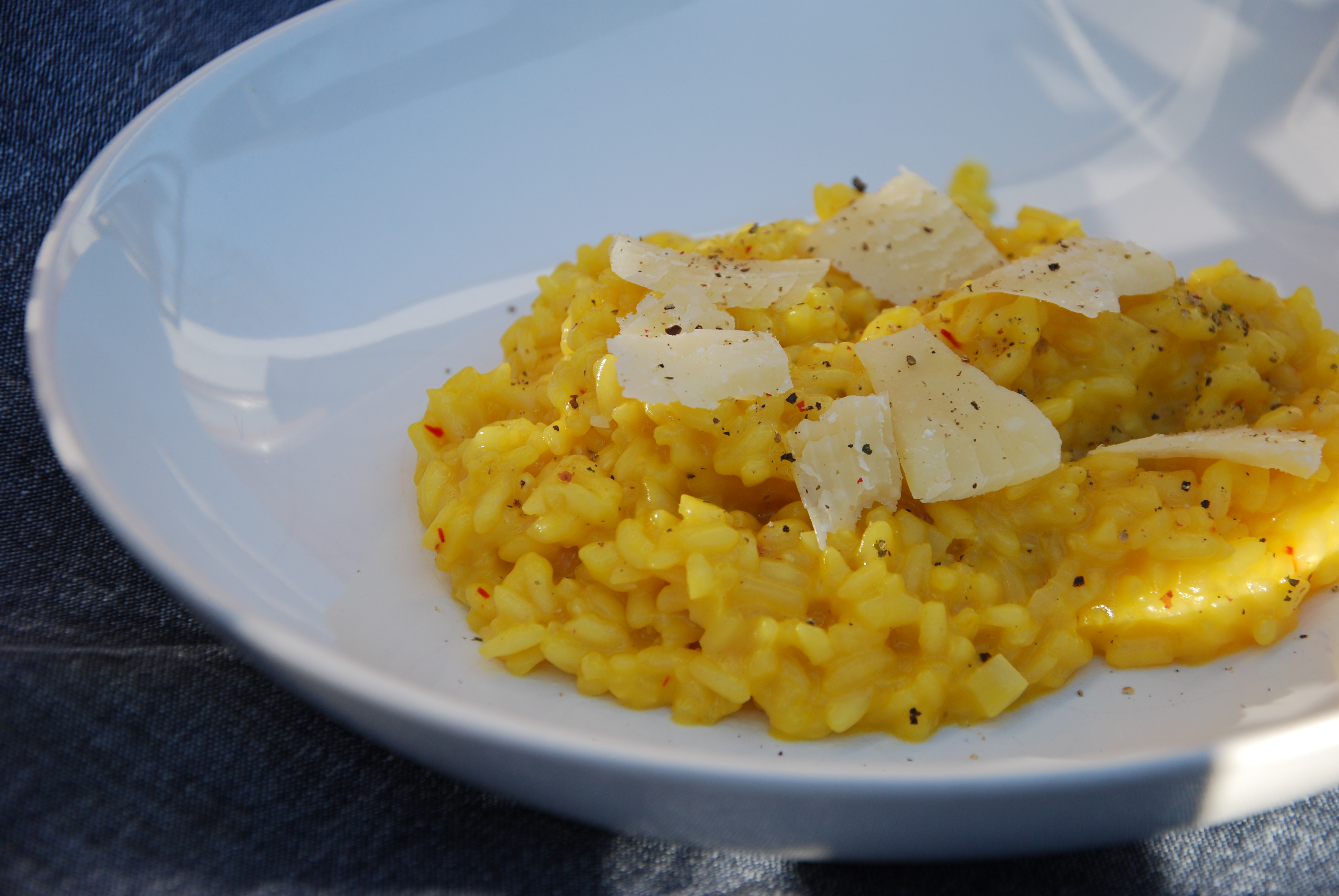 Jest to potrawa, która od lat na warsztatach wzbudza najwięcej kontrowersji. Albo budzi zachwyt, albo wprost przeciwnie. Bardzo lubię obserwować reakcje uczestników po pierwszym kęsie tego dania. W domu Maja i ja ją uwielbiamy, chłopacy nie chcą jej jeść. Cóż jest w niej takiego? Właściwie tylko szafran, który „robi” całe danie. Ta najdroższa przyprawa świata jest niezwykle aromatyczna i wystarcza jej szczypta do doprawienia całej potrawy. W standardowym opakowaniu szafranu jest go jedynie 0,12 g! Rozpuszczony w wodzie lub bulionie pachnie dość osobliwie. Najlepiej spróbujcie sami, żeby mieć własne zdanie. Najlepiej zrobić je na delikatnym bulionie warzywnym, ale na wodzie też jest w porządku. I jeszcze jedno – risotto na zdjęciu ma wyjątkowo intensywny kolor, bo zrobiłam j z połowy porcji ryżu, ale dosypałam całe opakowanie szafranu. Przy zachowaniu proporcji z przepisu, jest nieco bledsze i nieco mniej aromatyczne.