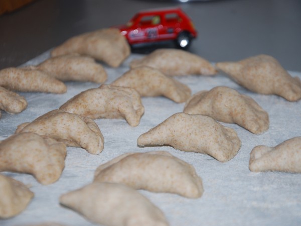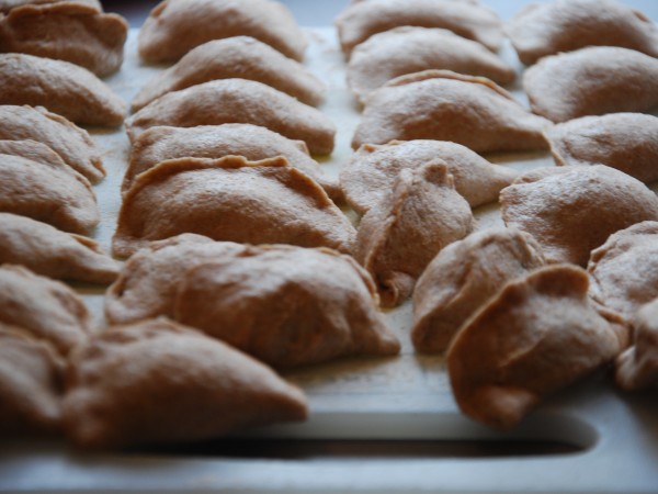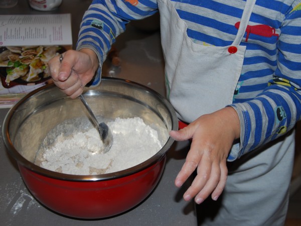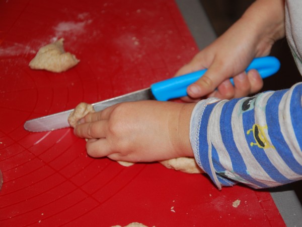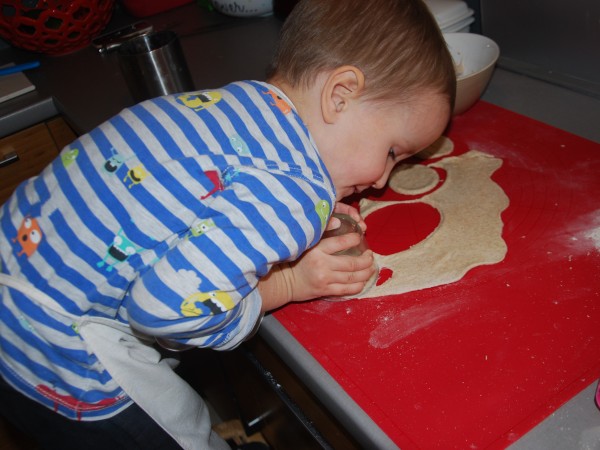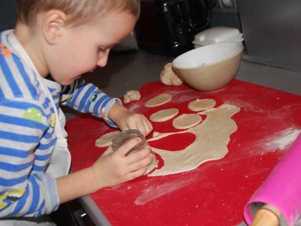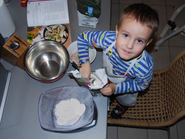 Na początku września Antek poszedł do przedszkola i już po dwóch dniach był chory. Dwa tygodnie w domu, kilka znowu w przedszkolu, znowu dom i tak na zmianę. Okresy przedszkolne są znacznie krótsze od tych domowych. Wiem, że KIEDYŚ będzie lepiej, ale TERAZ siedzimy ciągle w domu. Bawimy się lego (nie lubię), autami (nie lubię), rysujemy i malujemy (lubię), czytamy książki (bardzo lubię) i spędzamy czas w kuchni (uwielbiam). Piekliśmy już ciasteczka, ciasto bananowe, a dzisiaj, po raz drugi, robiliśmy pierogi. Dla Antka z mięsem (indyk z rosołu potraktowany jedynie blenderem), dla nas ze śliwkami. Byłam w szoku, że kawałek ciasta zajął Antka na ponad godzinę. Zdążyłam zrobić 24 pierogi nadziewane mięsem i 29 ze śliwką, posprzątać, a on lepił z ciasta kiełbasę, chleb, placek, torebkę…Było świetnie, ale cieszy mnie, że jutro idzie do przedszkola :-)