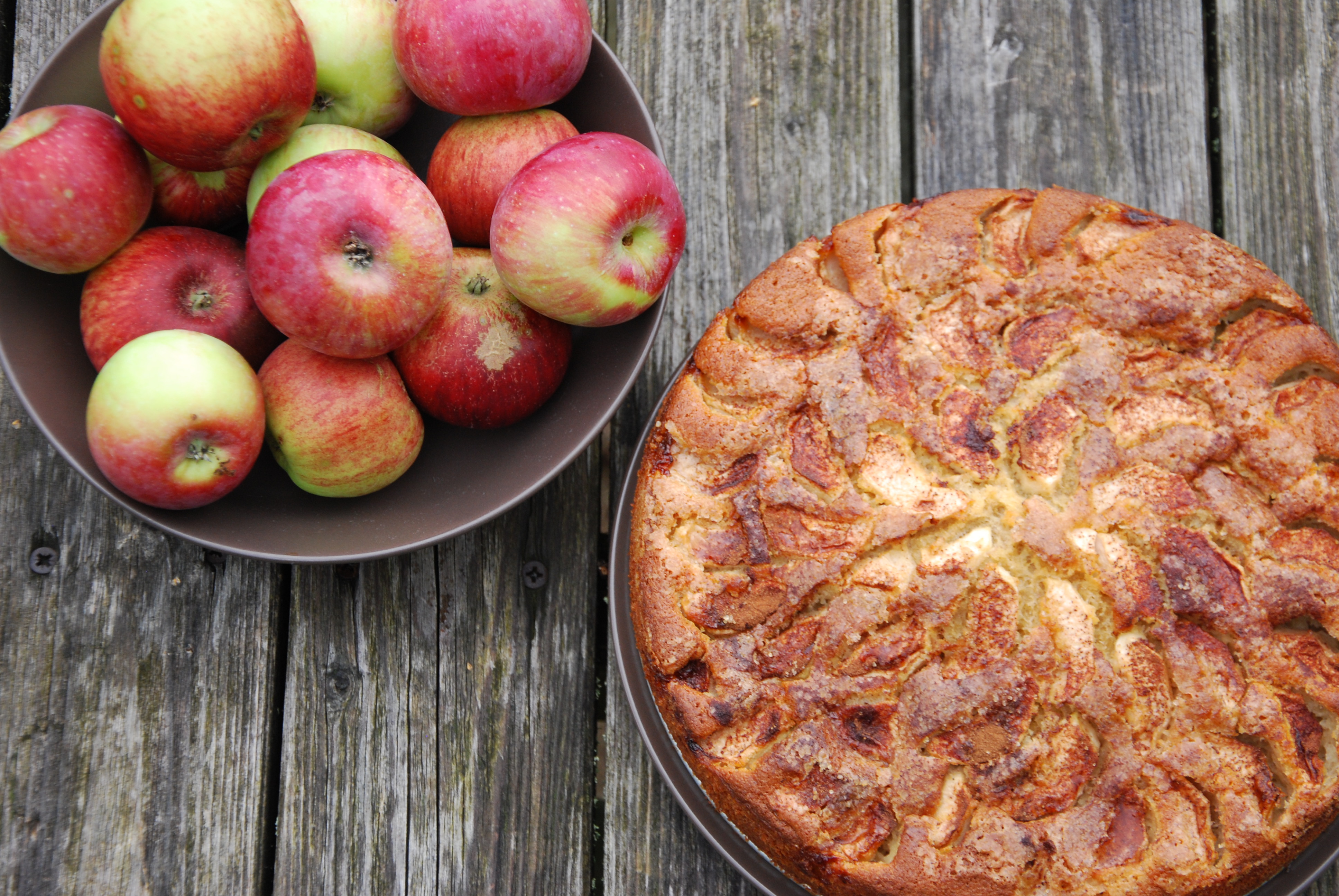 Nasze wakacje w Beskidach dobiegają końca. Na osłodę upiekłam ciasto. Zadzwoniłam po przepis do mojej Mamy, bo nabrałam ochoty na ciasto, które piecze od zawsze i które kojarzy mi się z dzieciństwem i rodzinnym domem. Można je upiec z dowolnymi owocami, ja użyłam jabłek, których mamy mnóstwo. Trzy dni temu, gdy schodziliśmy z Szyndzielni, mijaliśmy pana, który sprzedawał jabłka z własnego ogródka. Nieduże, bardzo czerwone i takie pachnące! Kupiliśmy osiem kilo, więc przerabiam je w różny sposób. Kompot, ryż z jabłkami, naleśniki z jabłkami i oczywiście ciasta. Jak w wierszyku Jana Brzechwy „Entliczek-pentliczek”, pamiętacie?